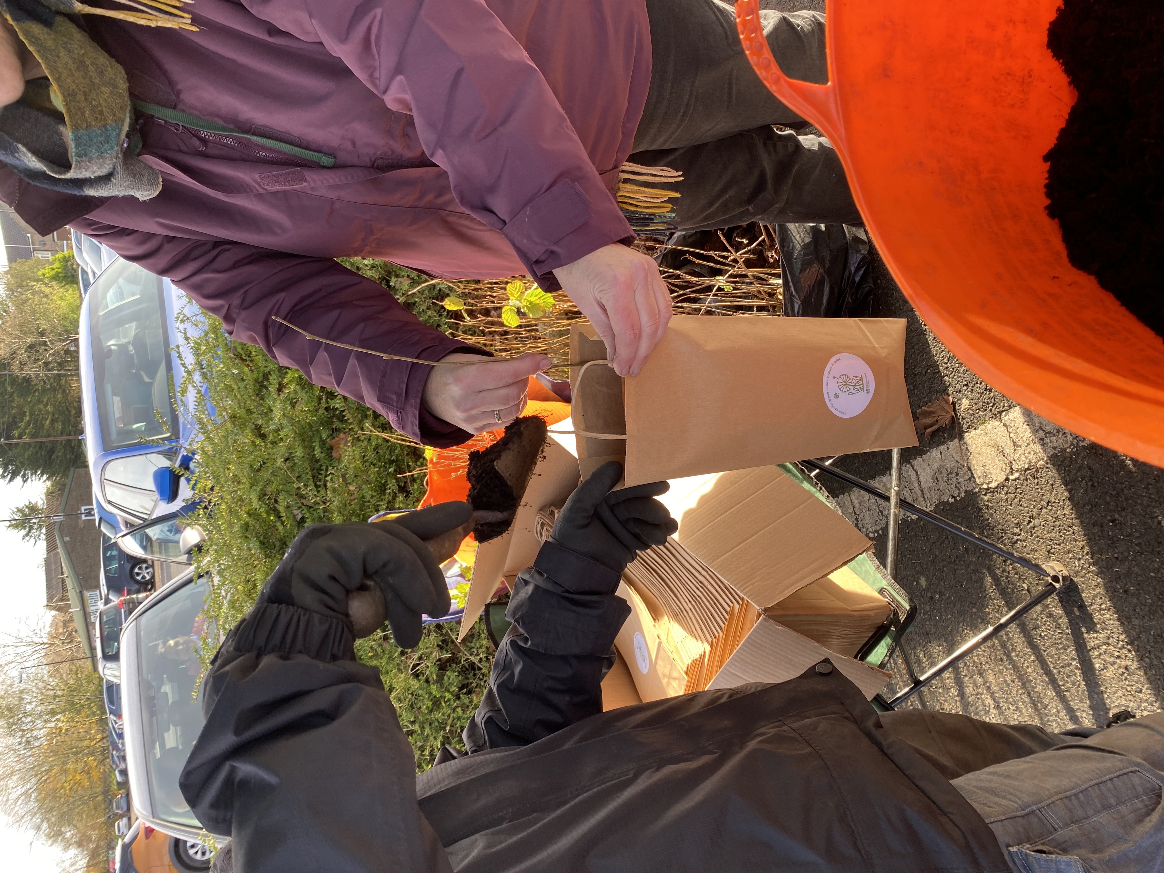 The parks team can provide paper carrier bags for the trees, but residents are welcome to bring their own bags or container if preferred. The trees are two years old and approximately 40-60cm high.